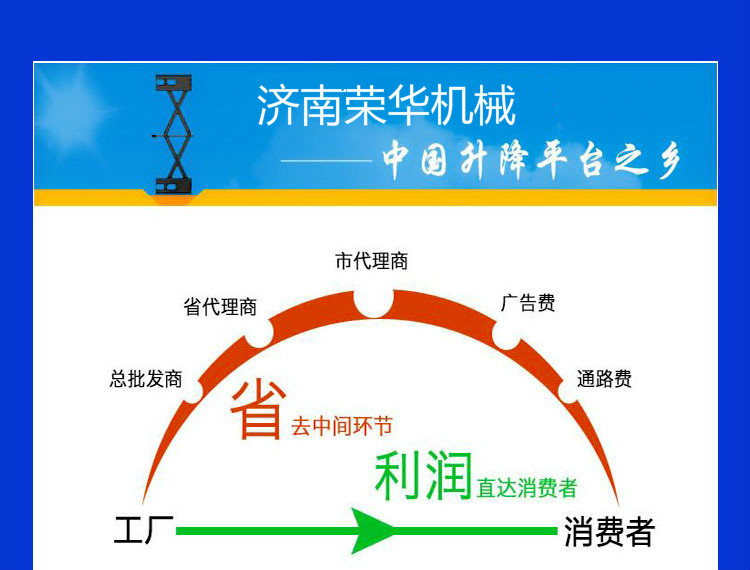 濟(jì)南榮華機(jī)械設(shè)備有限公司是一家集研發(fā)、設(shè)計(jì)、和銷售于一體的制造型企業(yè),專業(yè)制造升降平臺(tái)、液壓升降機(jī)械、鋁合金升降平臺(tái),登車橋等,曲臂式升降機(jī),高空作業(yè)平臺(tái),技術(shù)力量雄厚,工藝先進(jìn)合理,檢測(cè)手段齊全。